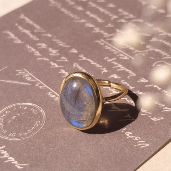 幻想的な輝きを放つ大粒のラブラドライトを贅沢にセッティングした、オーバルリング。