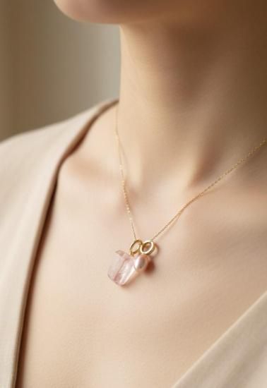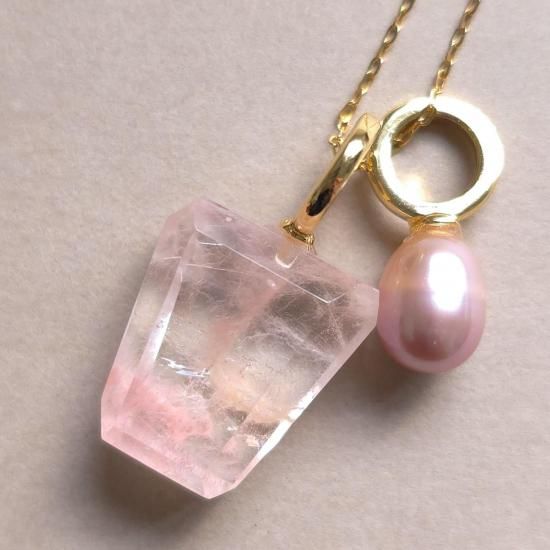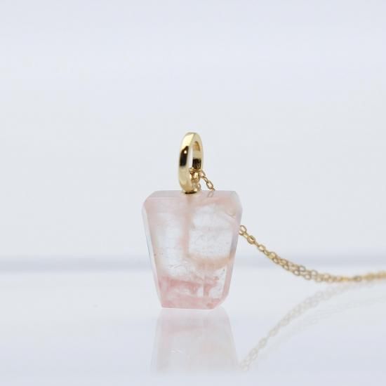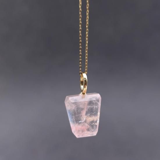 ふわふわした優しいピンク色の正体は、角閃石と呼ばれる鉱物で、別名ラビットファークォーツを呼ばれる優しい印象の天然石です。良質なアンフィボールクォーツは希少な一点物。