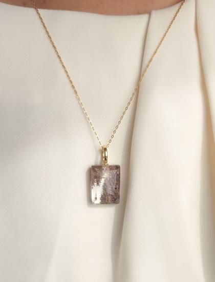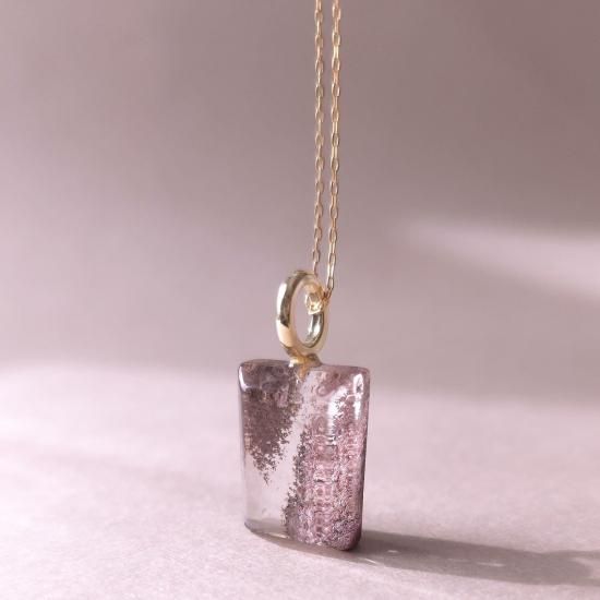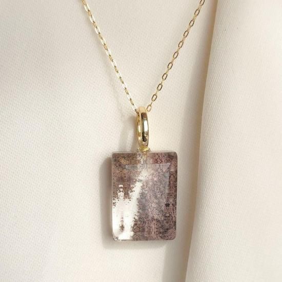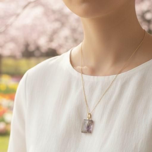 光を受けるたびに、内側の優しい風景がやわらかく浮かび上がり、胸元に静かな自然の息吹を感じるネックレスです。